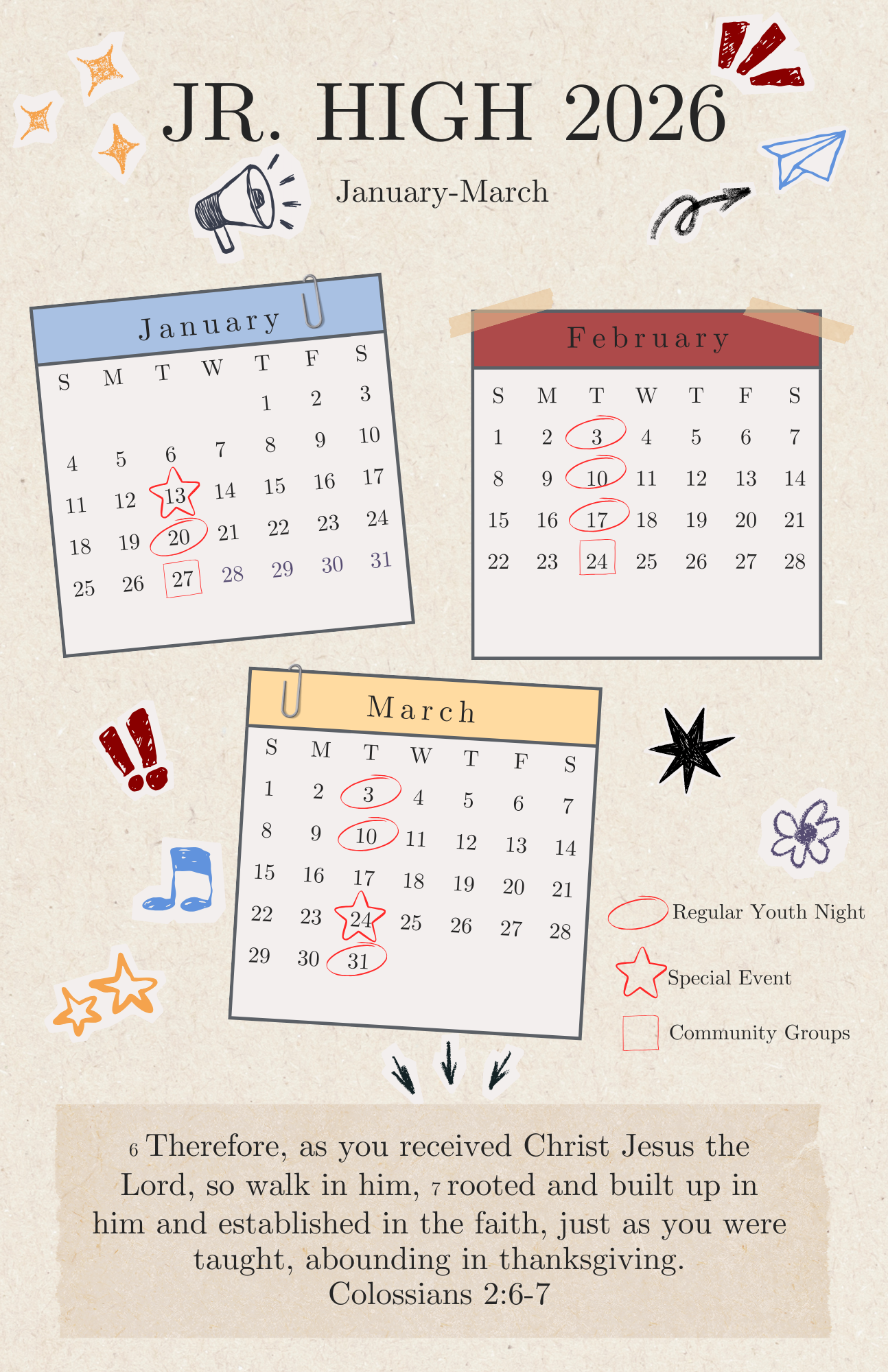 Grades 6-7 meet on Tuesday Nights